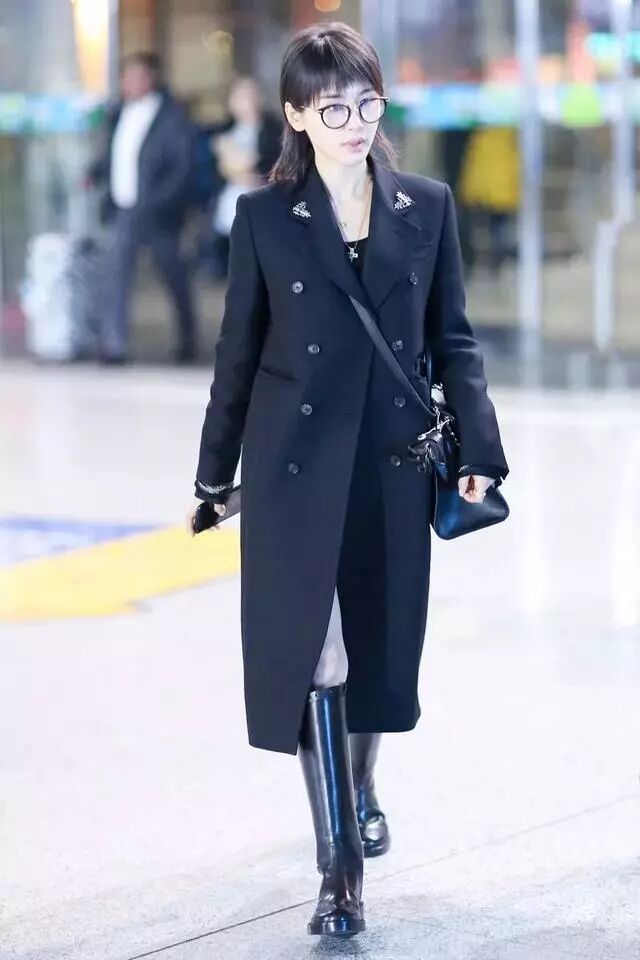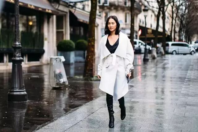 2.日常出行:大衣+长靴,保暖又塑腿型,当下半身的线条被长靴紧紧包裹住时,真的很显高!内搭打底的话以连衣裙为最佳。