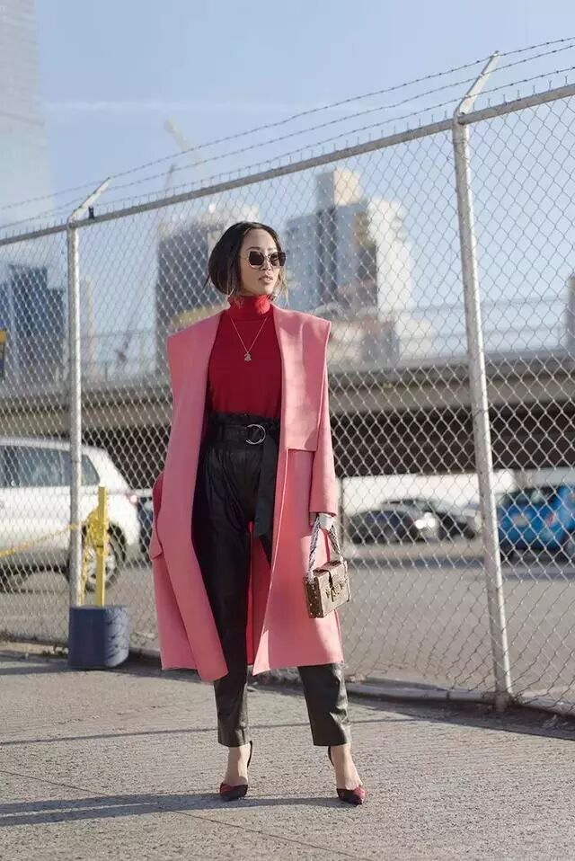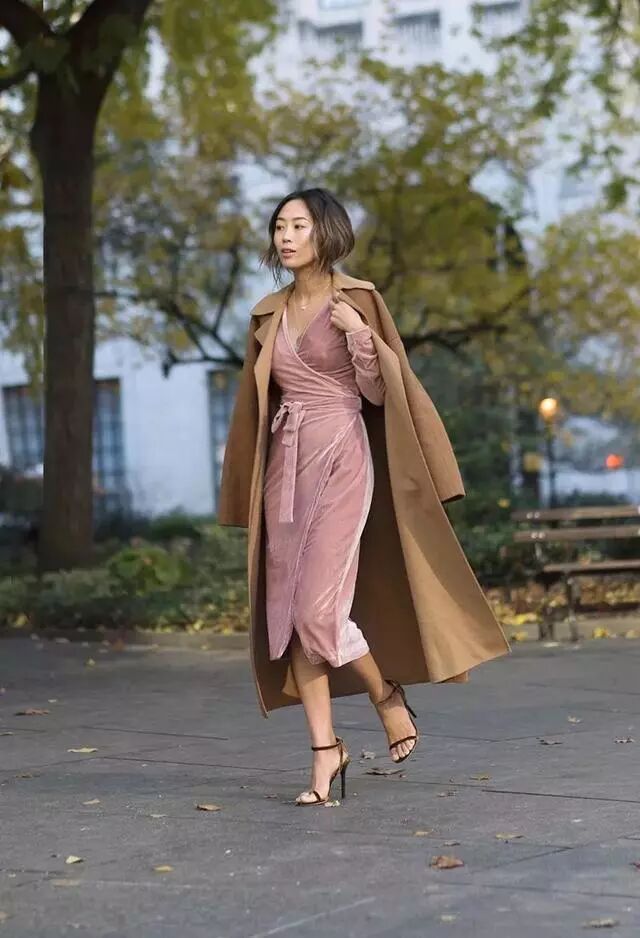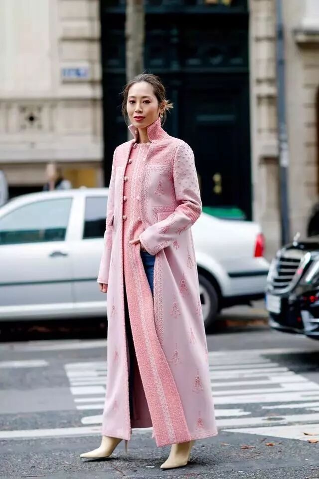 这几季一直流行的粉色是浅色长大衣非常不错的选择。
