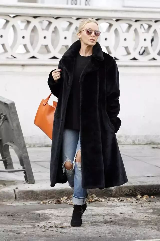 154cm的Kylie Minogue也懂得利用长大衣的优势显高: