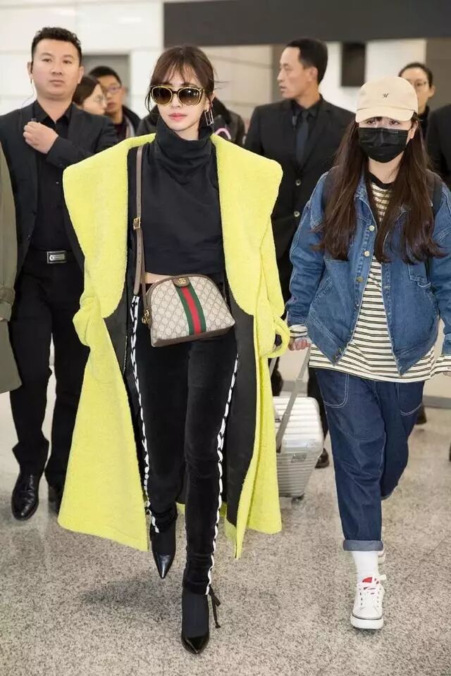 而同样都是脚踩平底鞋,穿上长大衣后的她却是这样,注意是平底鞋: