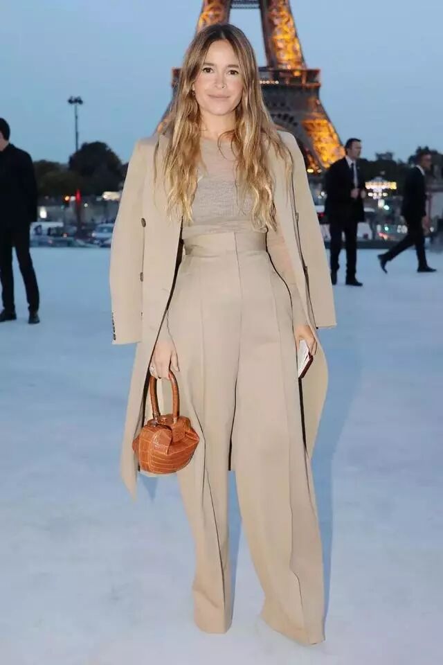 现在,她冬天的着装有三点精髓。1.干练造型一定要大衣+阔腿裤,隐藏高跟鞋舒适又显高。