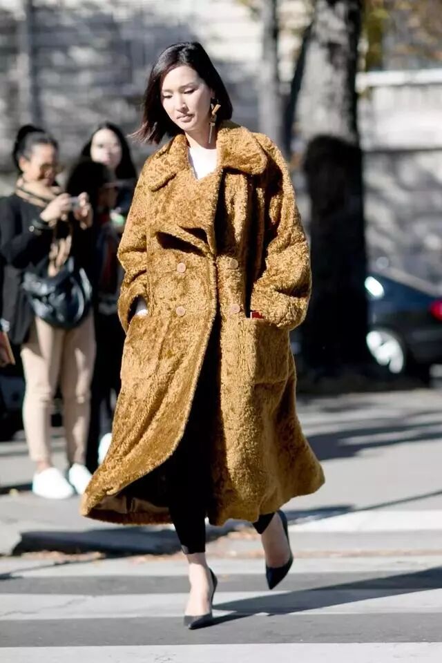 今年非常流行的“泰迪熊”大衣,高个女生穿真的有可能变熊……而娇小个子配上高跟鞋会显得可爱又时髦,牛仔裤在这依旧是不会出错的选择,正式点的可以穿上西服套装,但记得一定要划分腰线。