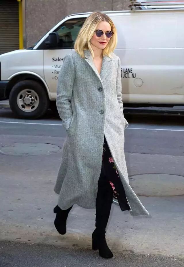 155cm身高军团的Kristen Bell,基本上出门都会穿长大衣。