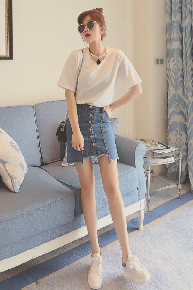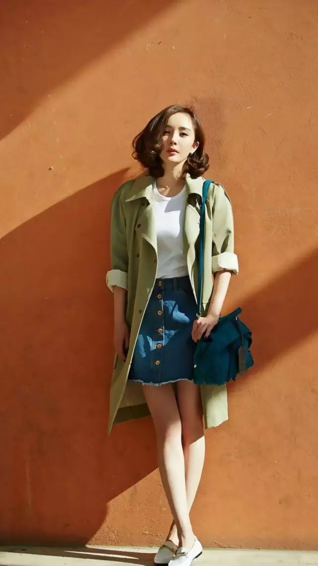 杨幂穿什么都是爆款并不是偶然的,她代表了大部分亚洲妹子的审美和穿法,走清纯清新路线的大幂幂选择了前排扣的短牛仔裙!非常适合小个子女生哦~