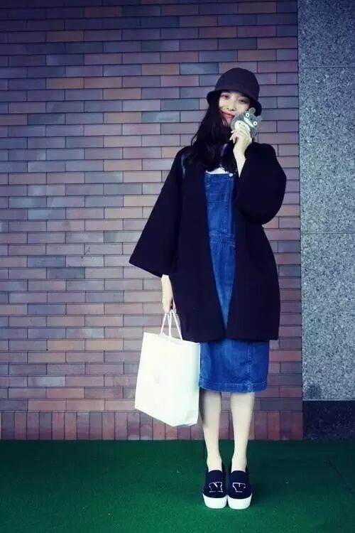 倪妮也是穿衣搭配的活教材,肤白貌美还条顺,爱涂红唇的她也有休闲的时候,比如这款牛仔背带裙,个性又减龄!