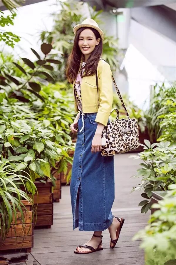 大长腿唐嫣先天的身高优势允许她尝试各种风格,草帽和休闲长牛仔裙的搭配有一种文艺又清新的feel~