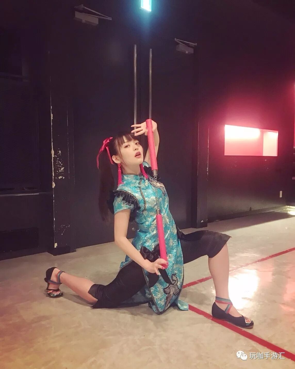 上坂堇身穿蓝色旗袍,手持双截棍,头扎马尾辫,就连耳朵上也带上了一个平安结,浓浓的中国韵味扑面而来。看到这组图之后,咖妹内心回响起了周董当年那首风靡大街小巷的《双截棍》。