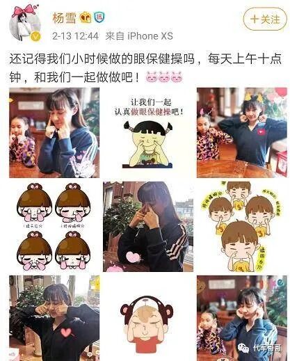不久前,杨雪就在微博上晒出了和女儿的互动日常,并配文:“还记得我们小时候做的眼保健操吗,每天上午十点钟,和我们一起做做吧!”
