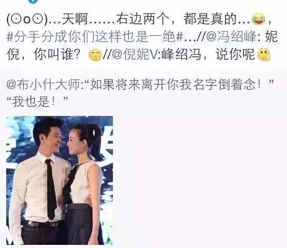 虽然两个人2015年就宣布分手了,但是当时两人经典的情话,“如果将来离开你我名字倒着念”还被网友挂出来调侃。
