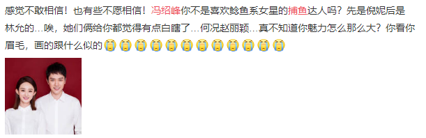 绯闻这么多,也难怪路人们会对赵丽颖嫁给冯绍峰不太放心。粉丝都在叮嘱他要照顾好赵丽颖~