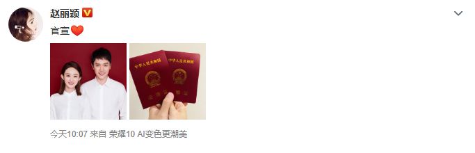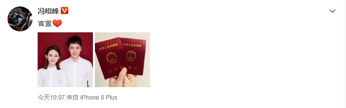 冯绍峰和赵丽颖这对终于公开了!而且一公开就是晒结婚证!这进度甩那些恋情公开的情侣几条街不止~