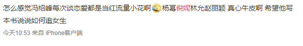 再加上今天公开的赵丽颖,冯绍峰的“小花收割器”称号更是被网友盖章认定了,都希望他出书教下如何追求女神。