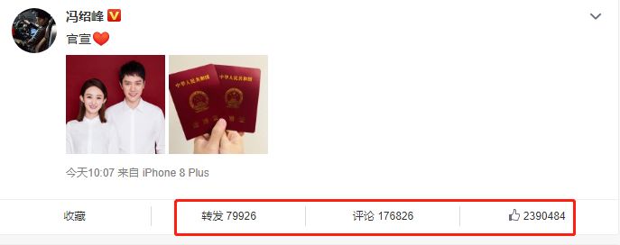 而冯绍峰呢,转发七万多,评论17万+,也就点赞破百万了。
