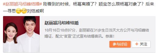 赵丽颖和冯绍峰公布结婚,不少吃瓜都吃晕了的“小呆瓜”才反应过来杨幂的老公是刘恺威,赵丽颖是和冯绍峰结的婚...
