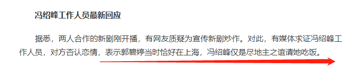 但是冯绍峰工作室倒是动作很快的就否认了,澄清说冯绍峰只是尽地主之谊。