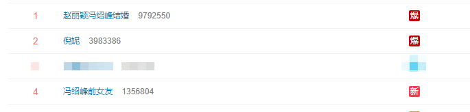 预料之中,微博话题爆了,微博被他俩给整瘫痪了都...而且微博话题前四,三条被冯绍峰所占据!