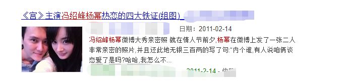 那时候铺天盖地的是杨幂和冯绍峰的绯闻。什么两人窃窃私语、被扒出来热恋铁证等等。