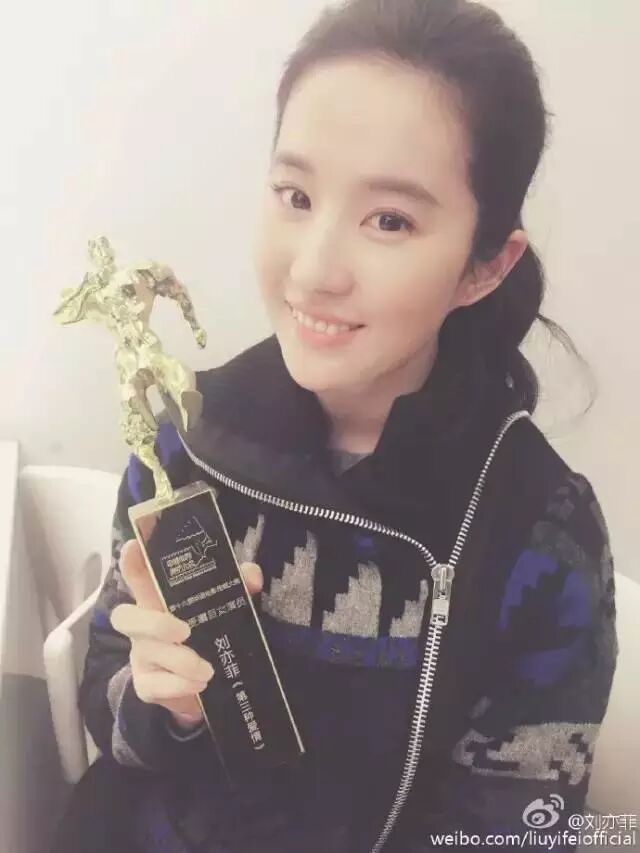 刘海全部梳上去扎个大马尾,素颜的刘亦菲,真的是颜值没话说。