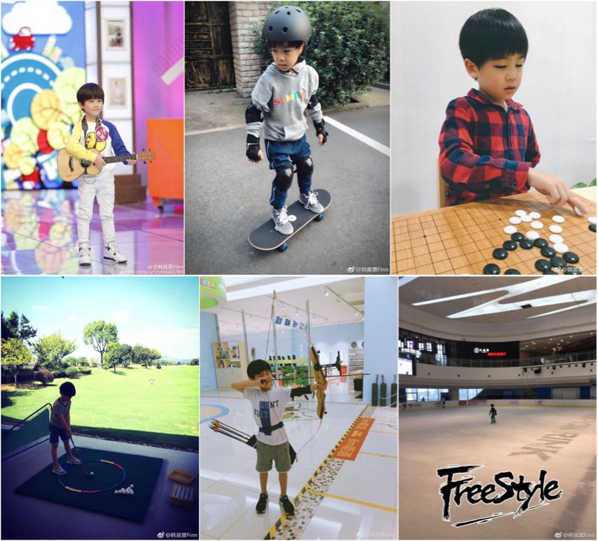 除了会演戏之外,韩昊霖还利用空余时间掌握了很多技能,唱歌、吉他、滑板、下棋、射箭、游泳等等,这些他都拿得出手,唱歌和吉他尤其擅长,还经常在微博上发福利还有各种节日祝福给粉丝唱歌~话说现在的小孩圈粉实力都从娃娃抓起了是吗?