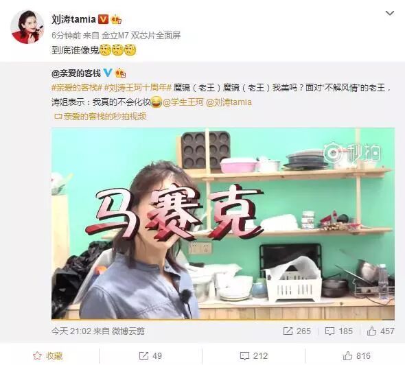 刘涛也在微博上吐槽了不解风情的老王↓