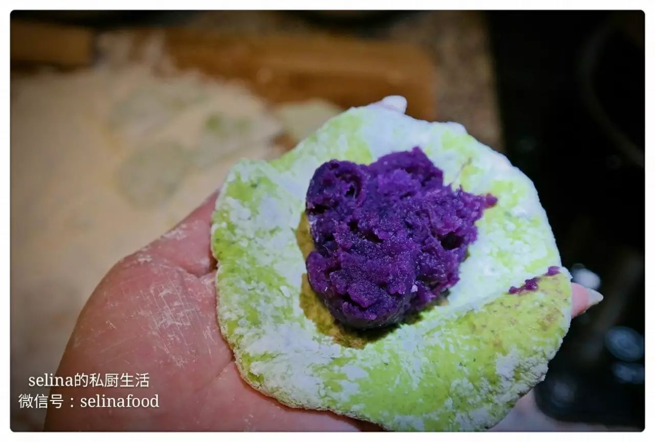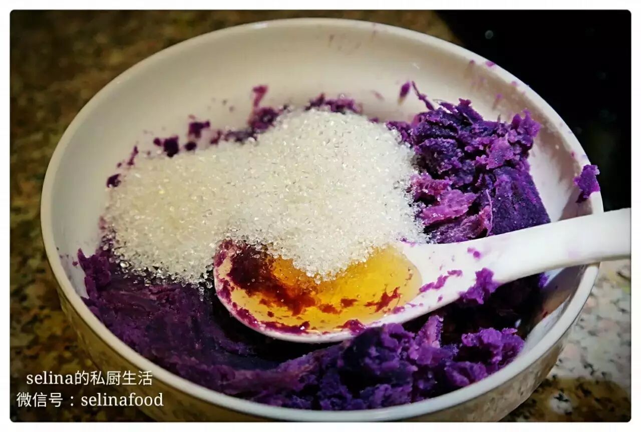 再加少许砂糖,紫薯与蜜糖拌匀,馅料就算是做好了!