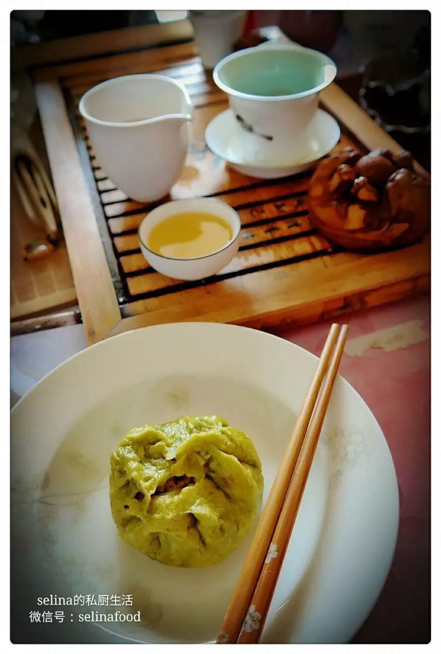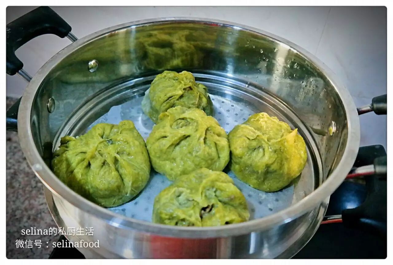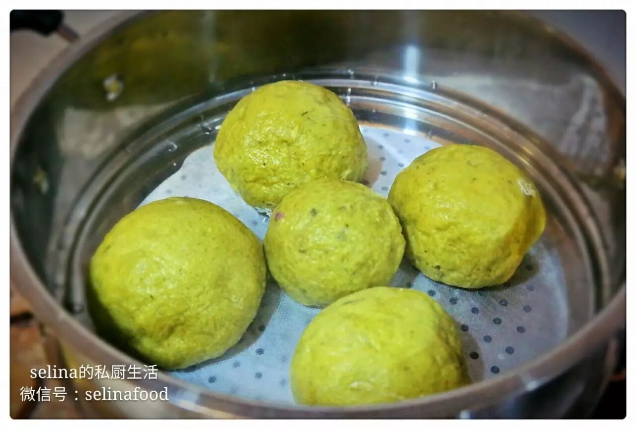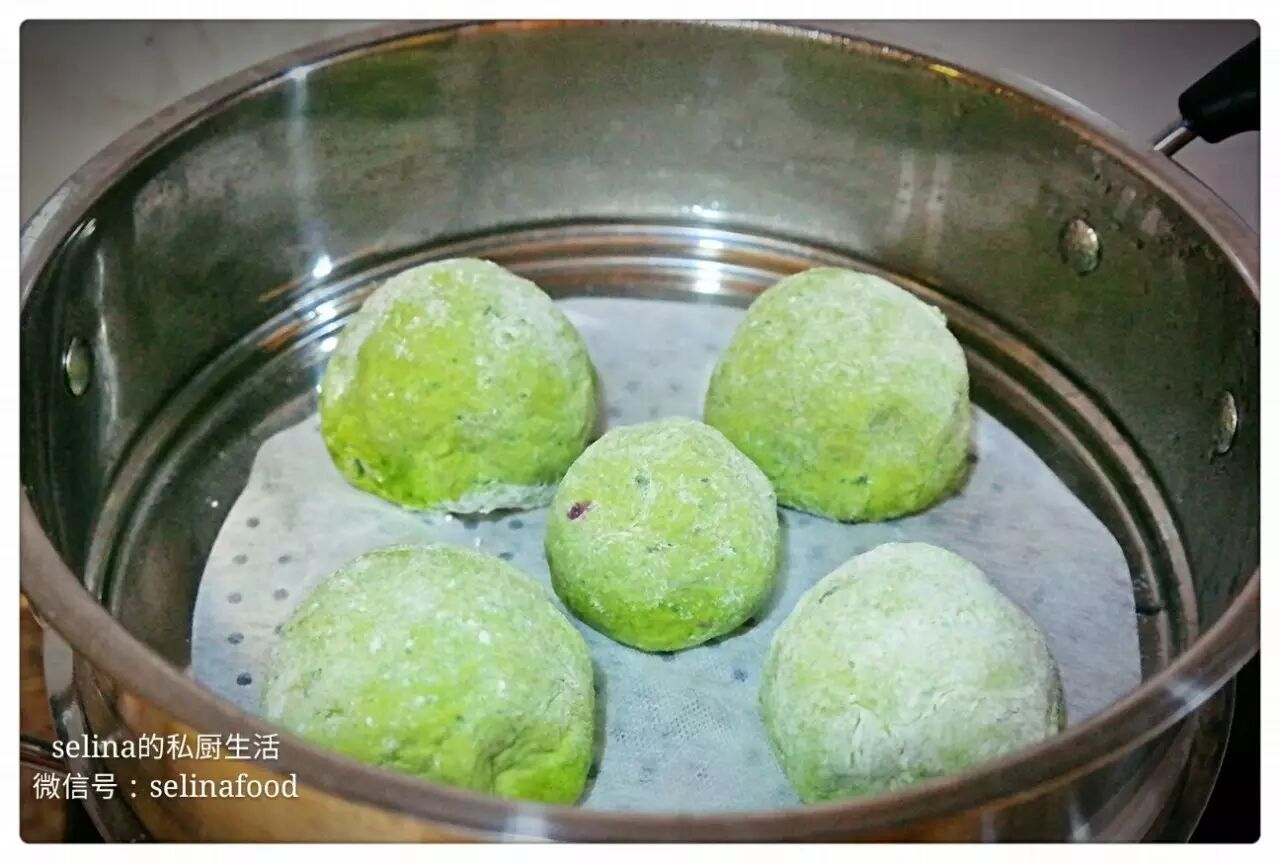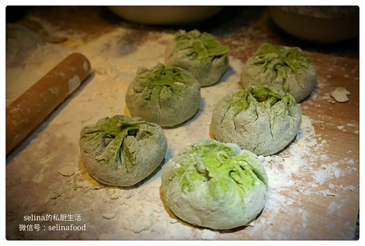 还有用温水调开的酵母水,与面粉和菠菜汁充分融合,和面至不粘手为佳。