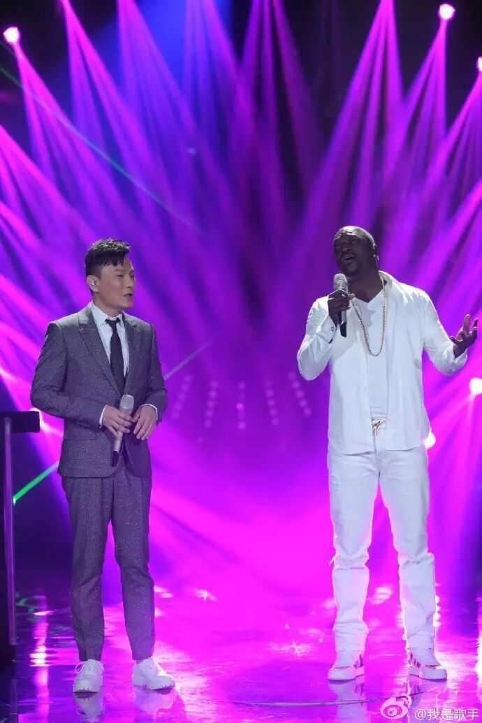 但是现场,张信哲和国际大牌Akon合作后,群众反应▼