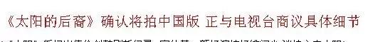 第一个:即将开拍中国版《太阳的后裔》!