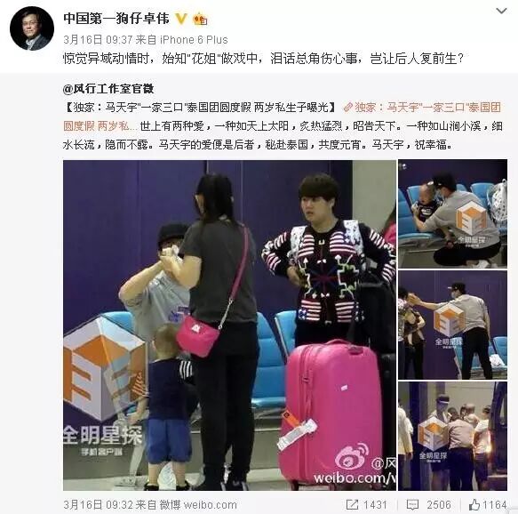 真相如期而至。原来是马天宇一家三口泰国团圆度假,两岁私生子曝光。