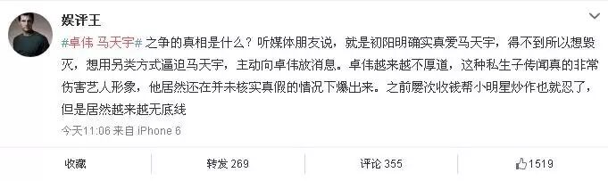 娱乐圈深扒爱好者卓叔又发了一条关于马天宇的微博,这已经是对此事件第四篇微博。