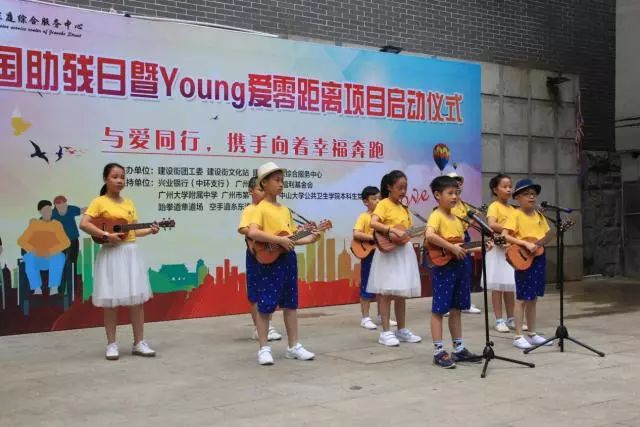 可爱的孩子们唱着歌,迎接这台特别的晚会。