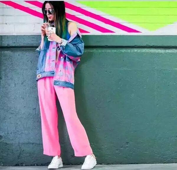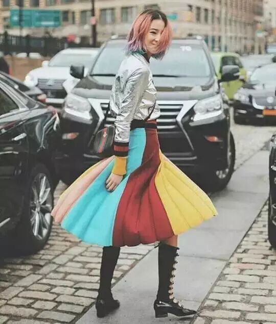 混搭很难了,彩色混搭更难,本来就是彩色头发再演绎彩色混搭,简直难到可以狗带了。而对她来说,演绎彩色驾轻就熟,灵动而鲜活。