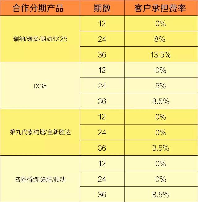 1、北京现代优惠活动以当地特约经销商对外宣传为准,各地区客户费率因当地经销商情况略有不同;但是!凡是广东地区客户购买第九代索纳塔,各期数均可享受0手续费分期优惠哦!