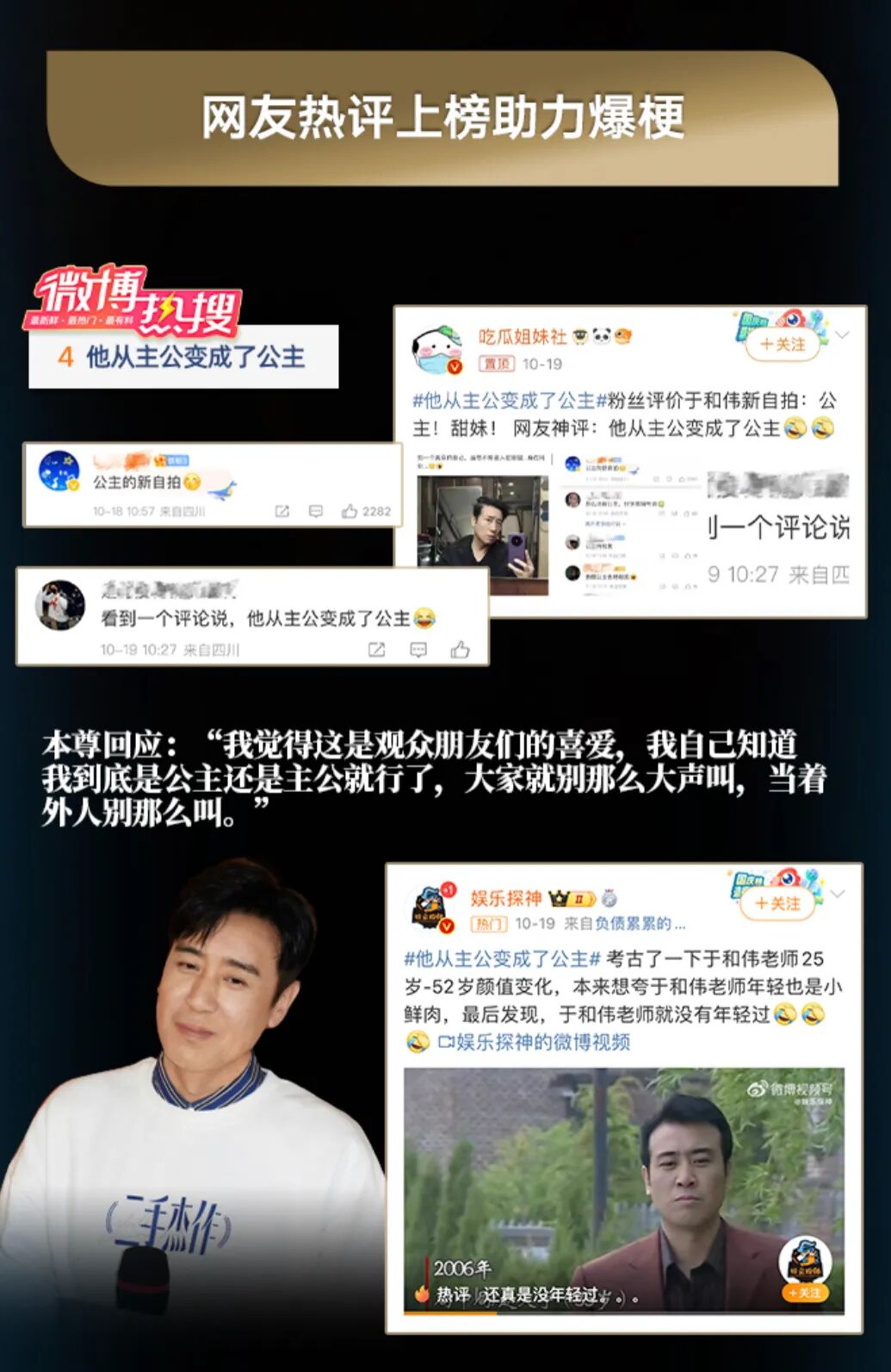 如今打开于和伟的微博评论区,你可能会进入一片新天地:高赞的评论里,粉丝对他的称呼不再是于老师,而是“公主”“老婆”这些明显带有泥塑、“调戏”性质的称呼。