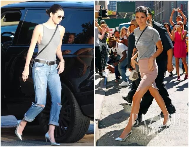 Kendall Jenner就用银色尖头鞋搭得一身好look,无论牛仔裤还是T恤铅笔裙,都能增强正式感参加任何场合都不犯怵。