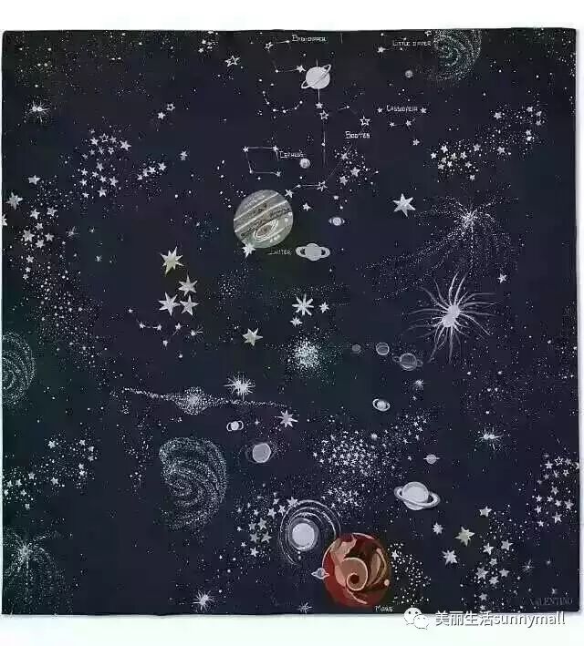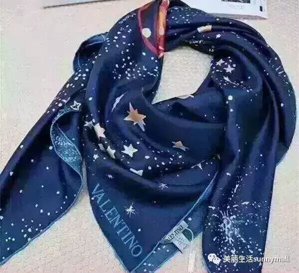 华伦天奴的星空真丝丝巾,1.4米*1.4米的大尺寸,使用星空的浪漫元素,设计感深邃神秘,让女神们更加风姿绰约,春夏必收藏之单品