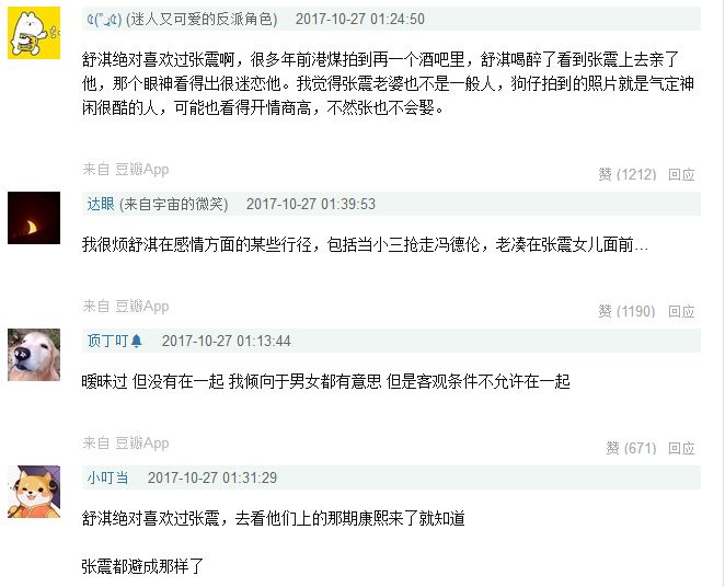 王力宏之后,不少人都觉得舒淇和张震很般配,舒淇也多次在节目中表达了自己很喜欢张震的心情,两人合作了很多剧,也收获了一大批CP粉。