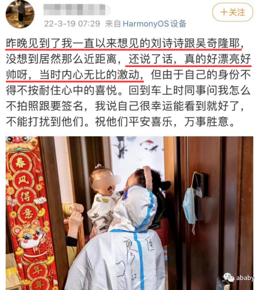 今天,有网友晒出做核酸检测的过程中遇见刘诗诗吴奇隆一家人的画面,不过该博主表示自己身为医务工作人员,一定要按捺住内心的喜悦和兴奋。不少粉丝们也是纷纷表示太羡慕了,希望能够求地址求偶遇。