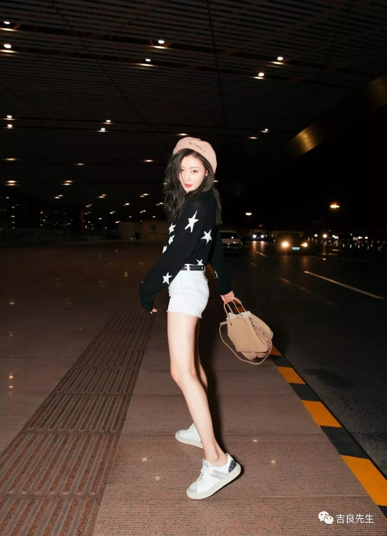 还是像张天爱这样一件清新针织衫搭上热裤秀好美腿,