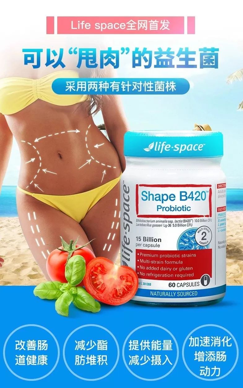 Life Space B420是澳洲目前第一也是唯一一款含有B420菌株的产品。每一粒就含有100亿的B420菌株!B420可以有效抑制脂肪的吸收,增加排出体外的脂肪量。而益生菌可以增强和保持肠道的自然平衡,对全身健康和免疫系统十分有利。