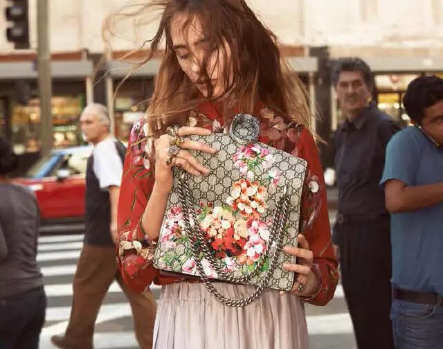 全智贤一身造型皆为Gucci新任总监Alessandro Michele上任后的第一个成衣系列,更有今季大红的Dionysus酒神手袋!