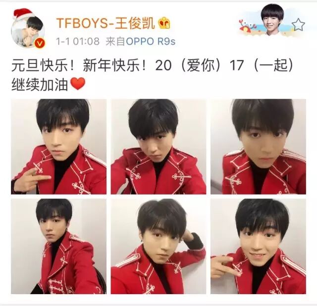@TFBOYS-王俊凯凌晨发博给大家送去新年的问候,还附上一组超级帅气的自拍!