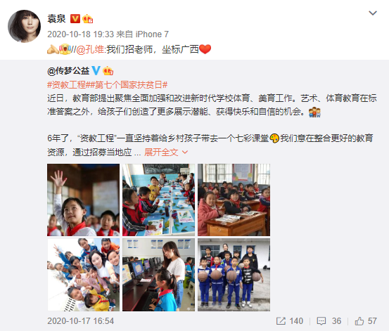 就连微博上发的最多的状态,也不过是为了宣传公益和扶贫事业。