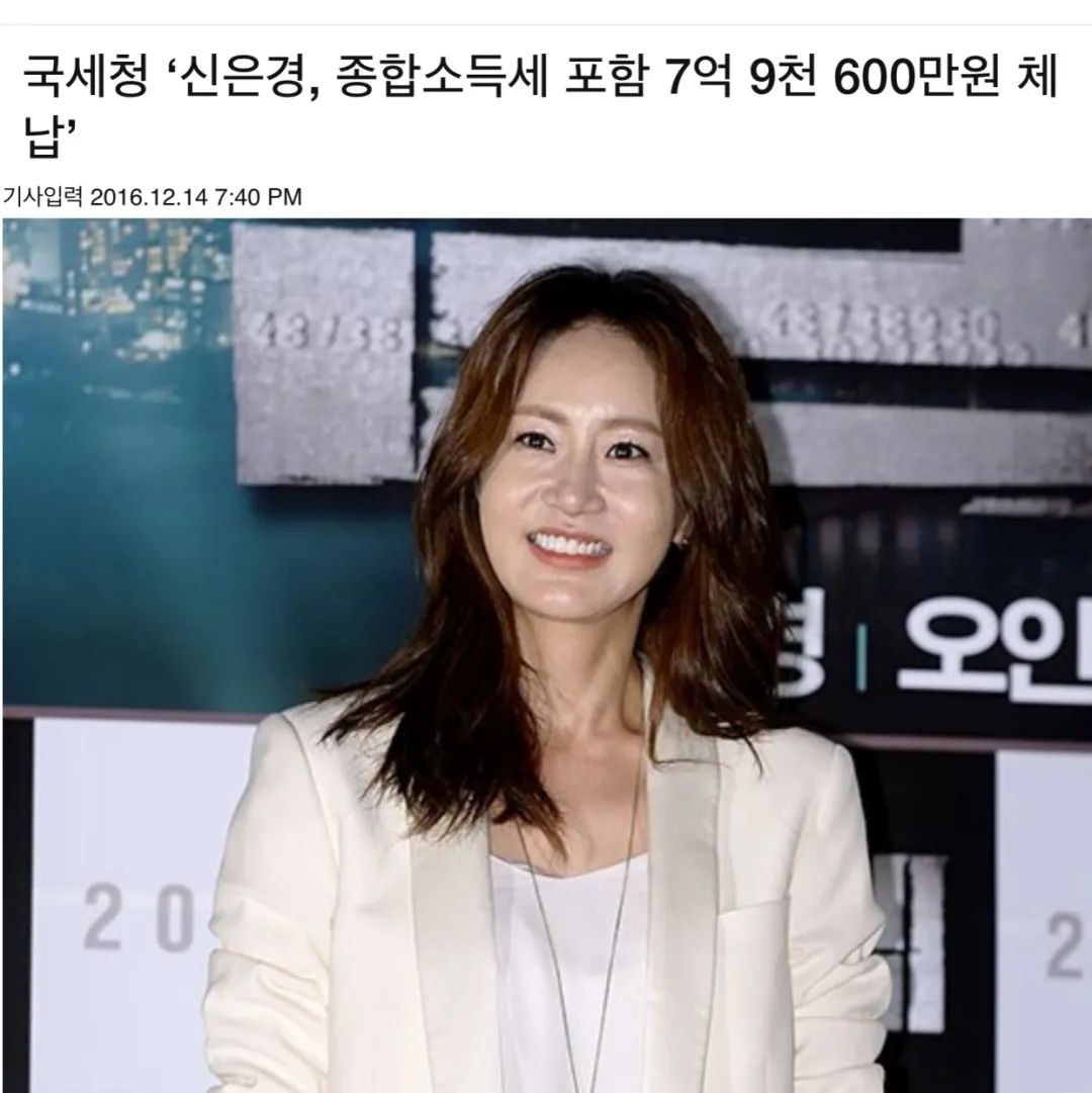 2016年12月,韩国曝光了一份欠税黑名单,申恩庆就在其中,她累计拖欠了7亿9千600万韩元(约合人民币460万)。2018年,因为无法偿还款项,申恩庆申请破产。