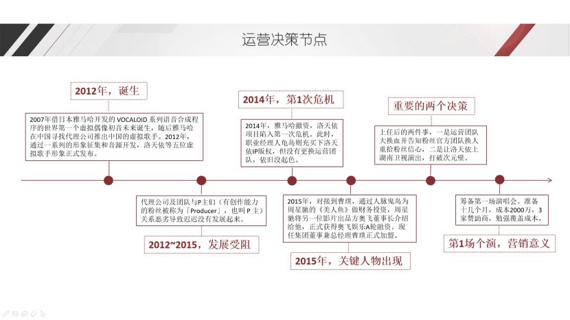 2007年借日本雅马哈开发的 VOCALOID 系列语音合成程序的世界第一个虚拟偶像初音未来诞生,随后雅马哈在中国寻找代理公司推出中国的虚拟歌手,2012年,通过一系列的形象征集和音源开发,洛天依等五位虚拟歌手形象正式发布。