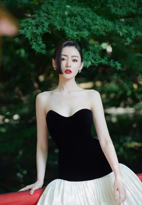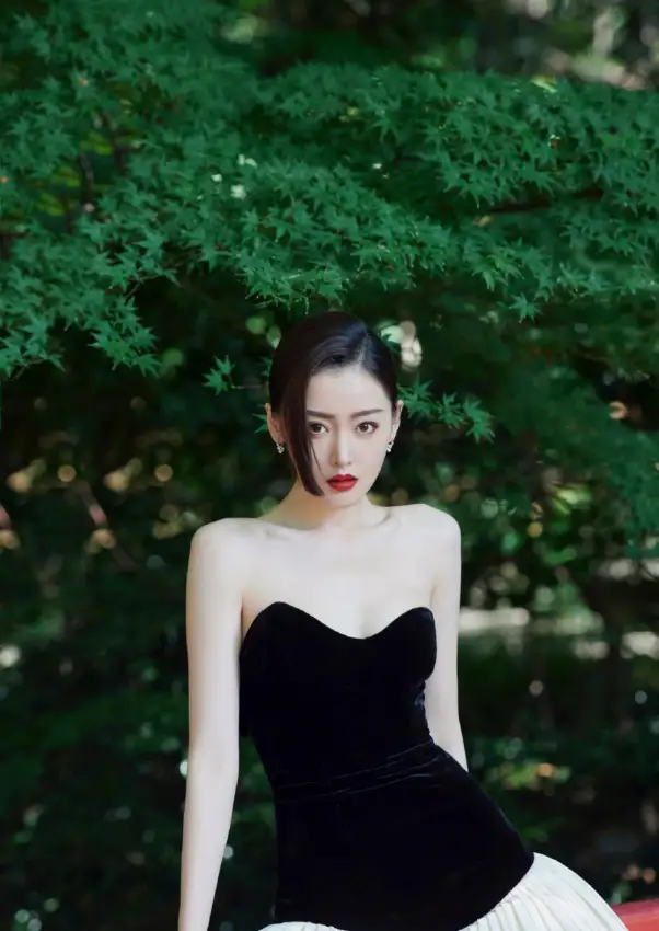 抹胸连衣裙对于张天爱这样身材比较纤瘦的女性来讲非常友好,让她的优点更好地展现出来。抹胸连衣裙可以帮助女性秀出脖子以及肩部线条,恰到好处不太容易走光。我们可以看到张天爱选择的这款连衣裙,上半身的黑色丝绒面料比较长,一直延续到胯部的位置,这样能够衬托的整个人比例更好。