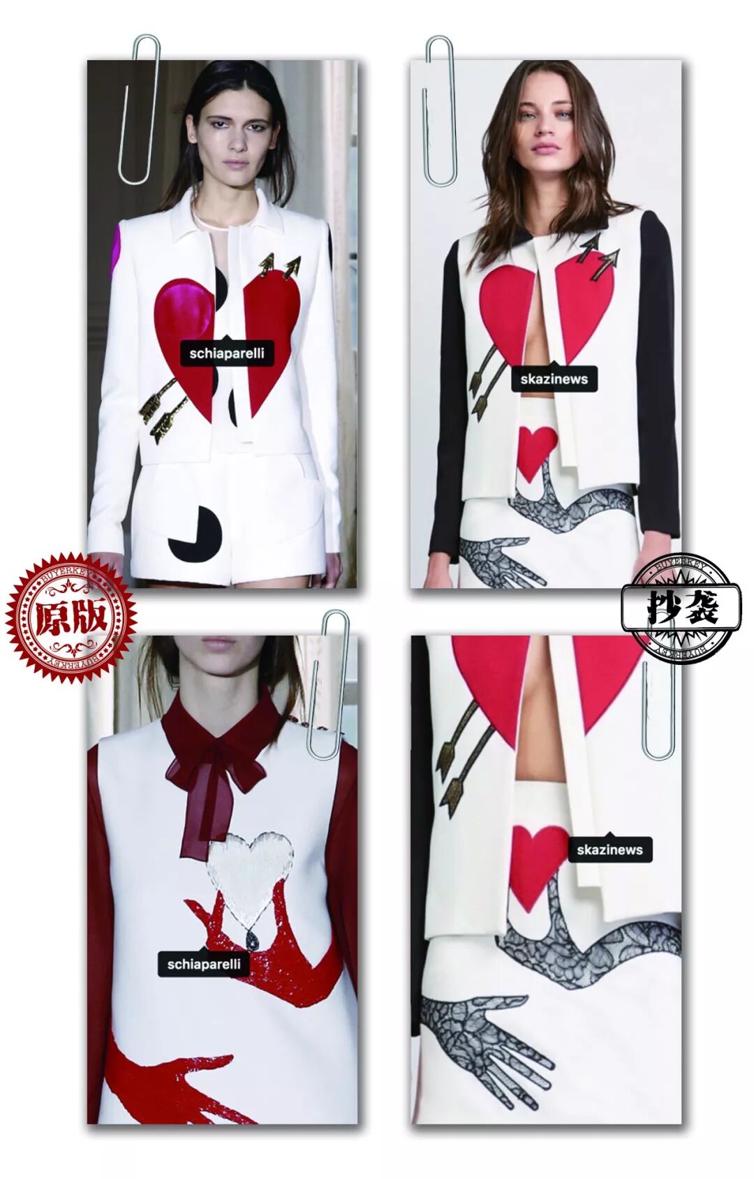 嗱,做人呢最重要是有头有尾,要抄也抄得彻彻底底。well,把Schiaparelli SS17的高定作品改个袖子,给爱心填个颜色也叫设计?叫抄考,还是低配版的那种~