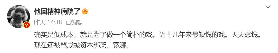 2月28日一早,张颂文发文感谢观众对《猎冰》的关注,表示“每个观众对一部影视作品,都有喜欢的理由和不喜欢的权利,这是正常的”。