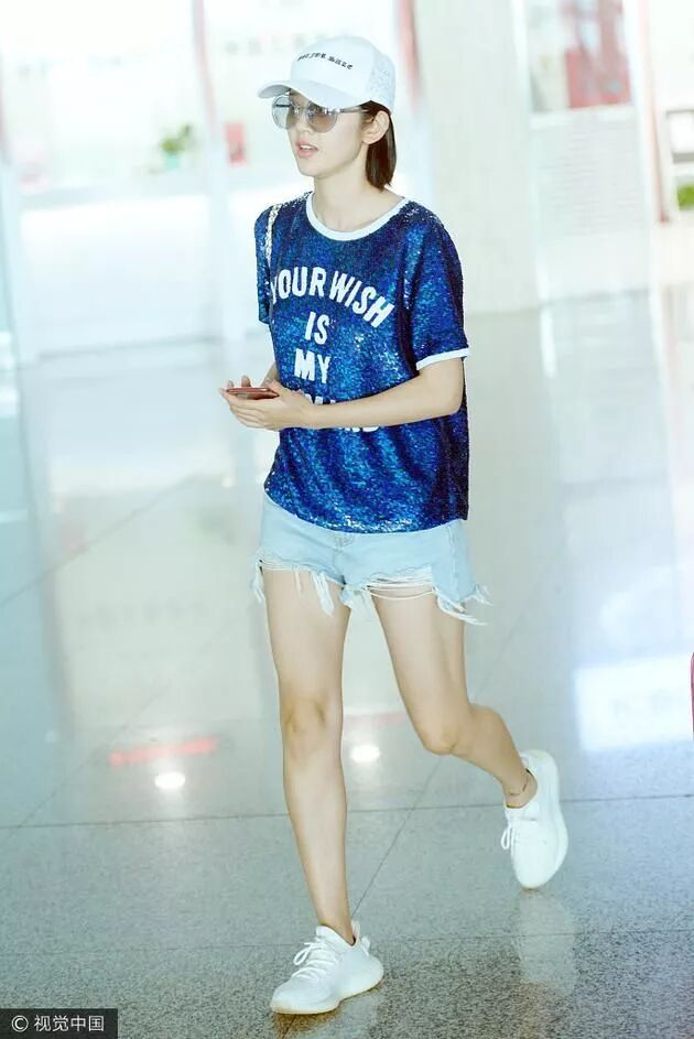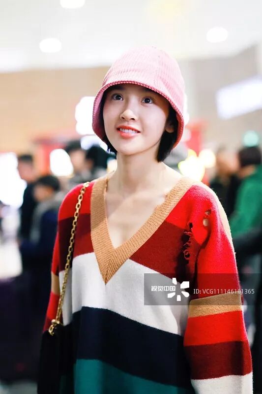 机场拍到的照片,她穿这种圆领衣服,领口总会歪。