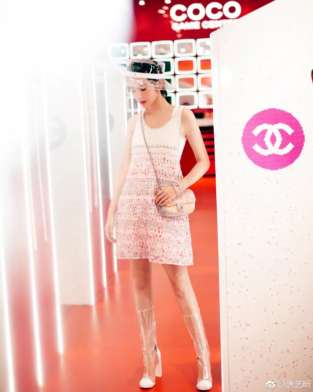 你会发现她站立摆拍的时候,全部都是重心在右脚,身子是歪的。来看几组精修图。